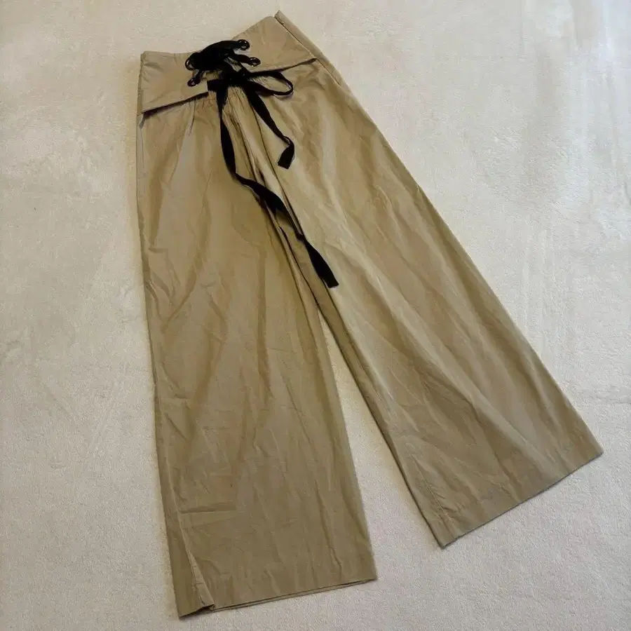 [ 자라 ] ( XS ) 레이스업 디자인 와이드 팬츠 셔링 하이웨스트