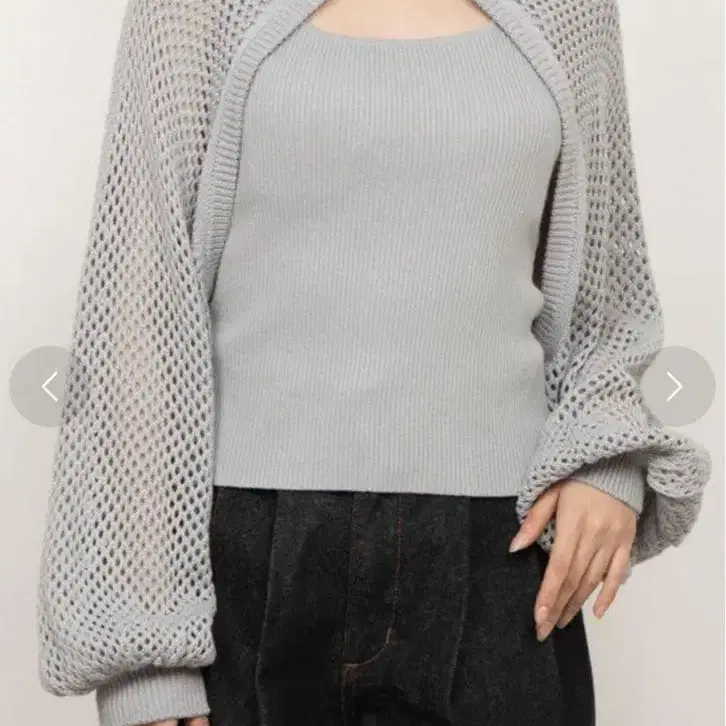 메쉬 니트 가디건과 리브 니트 탑의 셋업입니다.
