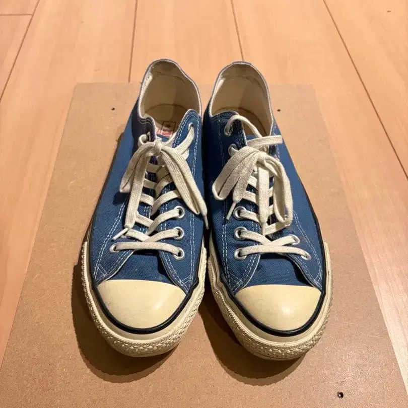 컨버스 메이드 인 재팬 일본제 스니커즈입니다. 2년 전에 구매했으며, 착용 횟수는 약 10회입니다. 상자는 없으므로, 이곳에서 준비한 종이상자에 정성껏 포장하여 보내드립니다. 약간의 얼룩이 있으므로 사진을 확인해 주세요. 즉시 구매 및 가격 인하 가능합니다.