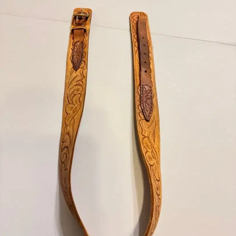 손 조각 장식이 들어간 내추럴 가죽의 조정 가능한 벨트입니다. - 소재: 가죽 - 디자인: 손 조각 장식 - 색상: 내추럴 - 사이즈: 조정 가능 전체 길이: 약 95cm 버클~가운데 구멍까지: 약 80cm 방문해 주셔서 감사합니다. 중고품임을 이해하신 후 구매 부탁드립니다.