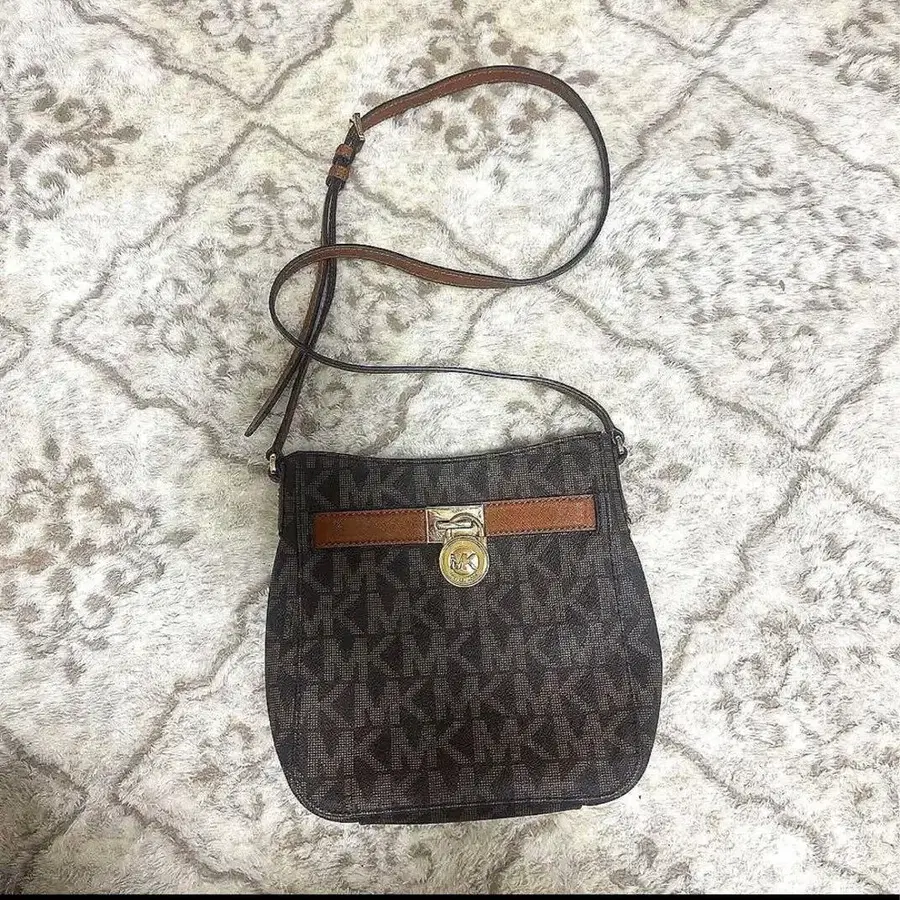 스크래치 없이 금장 장식이 깔끔한 상태입니다. used 상품이므로 사용감이 있을 수 있습니다. 양해 부탁드립니다. MICHEAL KORS 마이클코어스 숄더백 사선 크로스 바디 카데나 자물쇠 골드 금장 장식 MK 패턴 시그니처 모노그램 세로: 22cm 가로: 22cm 바닥: 6cm 평평하게 놓음 개인 측정임을 양해 부탁드립니다. KORS 색상 - 브라운