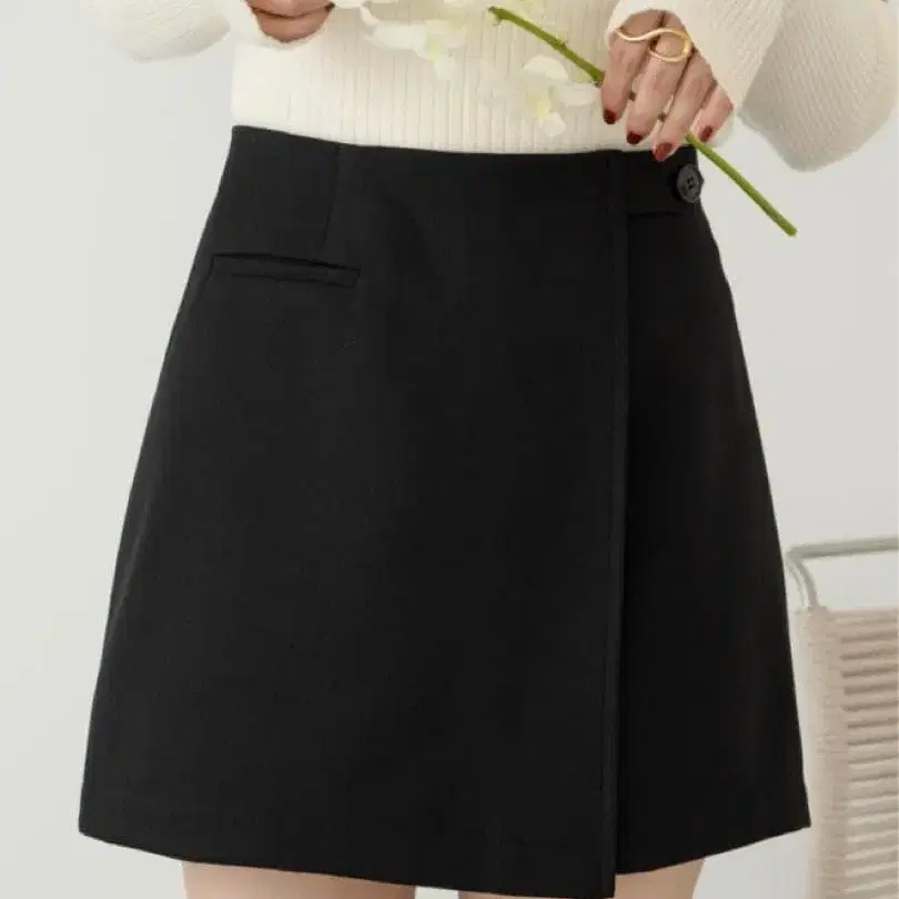 블랙 포켓 부착 랩스커트