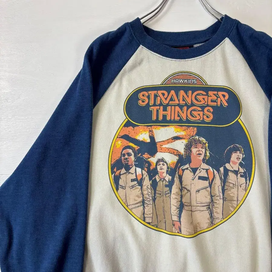 • 기묘한 이야기 래글런 티셔츠 시즌 1 구제 의류 2XL 사이즈 화이트