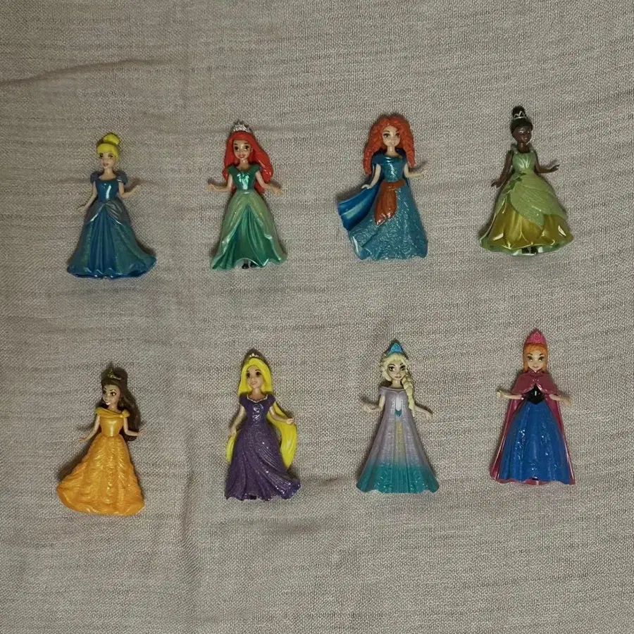 열람 감사합니다꒰ ᐡᴗ͈ ·̫ ᴗ͈ ꒱ ♡ ♡ 내용량: 총 8명 (신데렐라, 아리엘, 메리다, 티아나, 벨, 라푼젤, 엘사, 안나) ♡ 크기: 세로 길이 약 10cm ♡ 클립식 드레스는 탈부착 가능합니다. ♡ 가능한 범위 내에서 가격 인하해 드립니다.