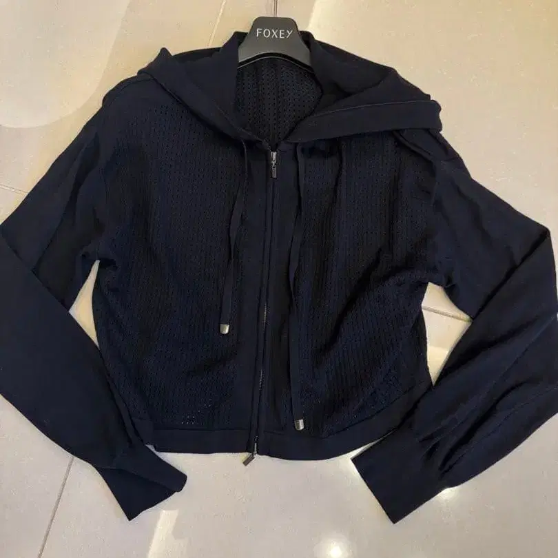 FOXEY 후드 부착 네이비 크롭 후드티 38