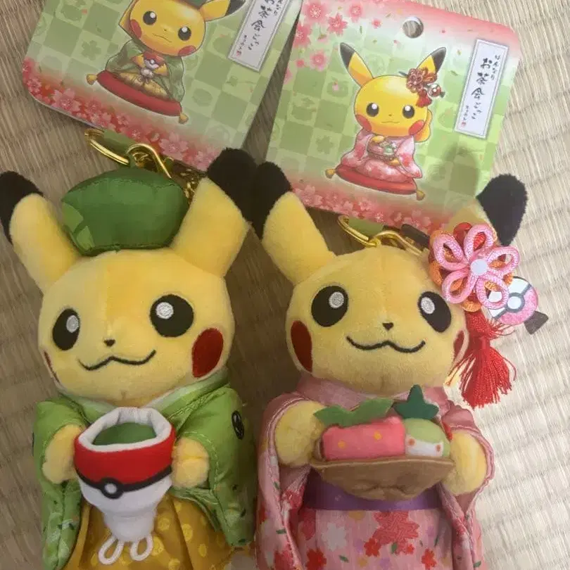 포켓몬 센터 교토 한정판 은은한 다회 놀이 피카츄 봉제 인형 2체