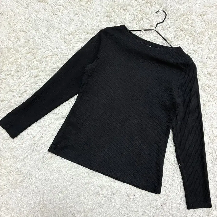 유니클로 리브 보트넥 T 셔츠 리브 코튼 블랙 (XL)