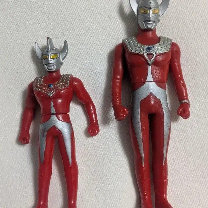 울트라맨 타로 피규어 - 사이즈: 2체 세트 (소: 약 12cm, 대: 약 15cm) 상태는 사진으로 확인해 주시고, 장식만 했지만 장기간 자택 보관한 중고품임을 이해하신 후 검토 부탁드립니다. 방문해 주셔서 감사합니다. 특촬물 #피규어 #소프트 비닐