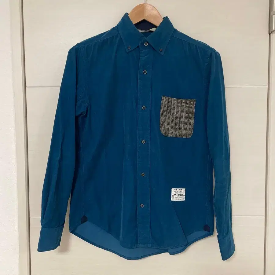 코듀로이 소재의 파란색 버튼다운 셔츠, 체크 무늬 포켓 부착. - 색상: 파랑 - 포켓: 체크 무늬 포켓 - 브랜드: WORDS WORTH - 스타일: 버튼다운 셔츠 - 소재: 코듀로이 방문해 주셔서 감사합니다. 사이즈 - M