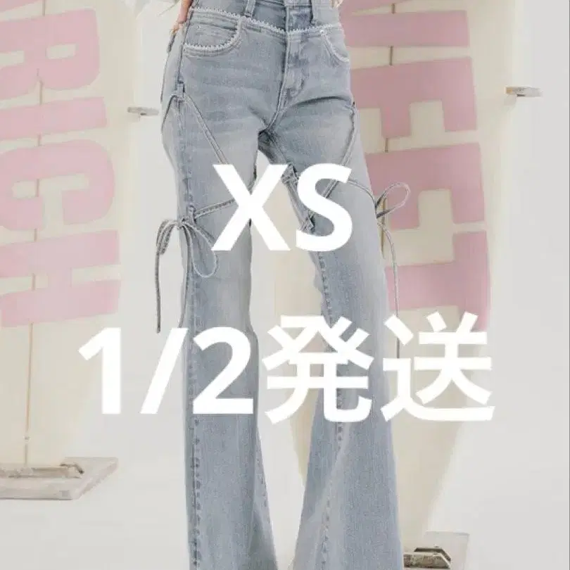 GRL 사이드 컷 아웃 리본 플레어 데님 팬츠 [fo2242] S