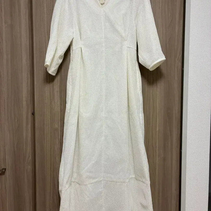 hokuspokus 화이트 7부 기장 롱 코튼 원피스 개더 포함