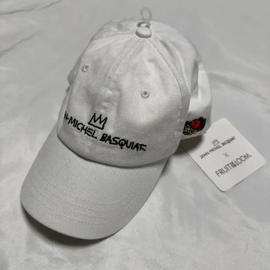 미사용 새상품 택 포함 단종 데드스탁 2020년 제조 프룻 오브 더 룸과 바스키아의 콜라보 캡입니다. 프론트에는 바스키아의 자수 로고 사이드에는 프룻 오브 더 룸의 후르츠 컬러 자수 야구 모자 프리 사이즈 조절 가능 컬러 화이트 약간 옐로우 컬러감이 나오고 있습니다.