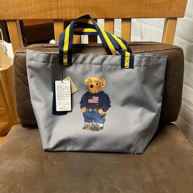 곰 자수가 특징인 그레이 색상 토트백. - 디자인: 곰 자수 - 색상: 그레이 - 스트랩: 파랑과 옐로우 컬러 스트라이프 - 내부 포켓: 있음 - 사이즈: 중형 안에 파우치가 들어 있습니다. 미사용 새상품입니다. 사진 촬영을 위해 1번 상자에서 꺼냈습니다. 방문해 주셔서 감사합니다.