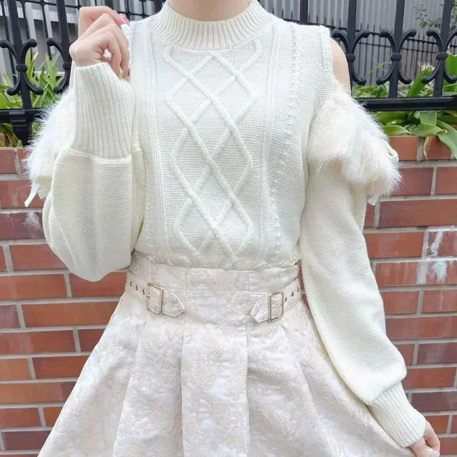 니트 케이블 니트 케이블 어깨 트임 니트 화이트 지뢰계