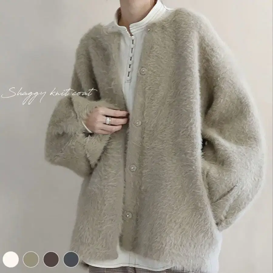 NOAHL 노알 샤기 니트 코트 색상: 그레이지 녹색이 섞인 카키에 가까운 색감입니다. 소매가 봉긋해서 귀엽습니다. 시착만 한 상품이며 택 없습니다. 즉시 구매 OK입니다.