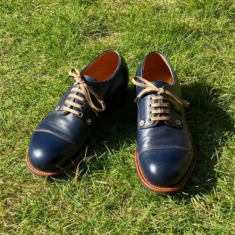 감사합니다. 부히의 가죽 신발입니다. 네이비, 인디고 색상으로 정말 멋집니다. 지인에게 구매했으며 시착 정도의 새상품급입니다. 26~26.5cm이신 분께 맞을 것 같습니다. 한정판 한 켤레이므로 빨리 구매하는 사람이 임자입니다! 잘 부탁드립니다.