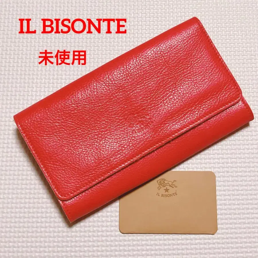 미사용 IL BISONTE 일비종떼 가죽 플랩 장지갑 스트로베리