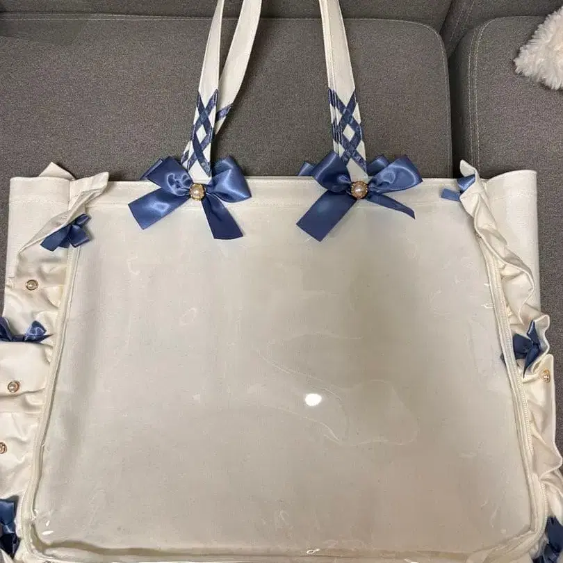 A3 프릴 디자인 이타백용 토트백 (White Limited) 스모크 블루 블루 파랑 1번 사용했지만 눈에 띄는 얼룩 등은 없습니다. 접어서 발송합니다. 컬러 - 블루 계열