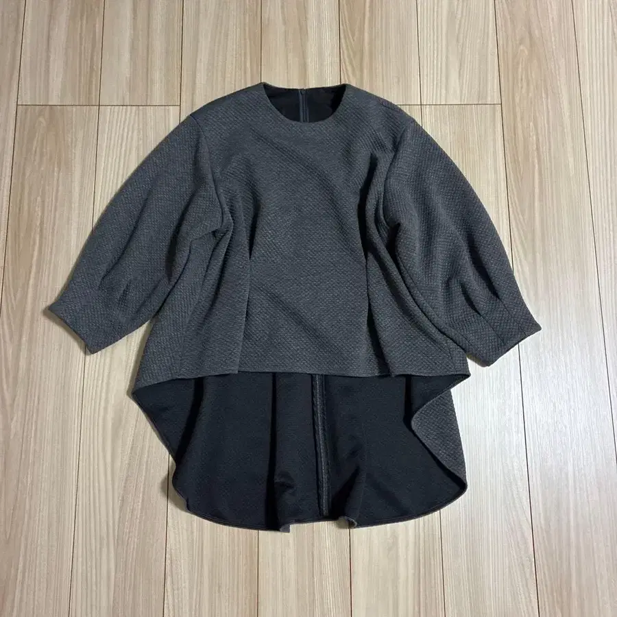 구매 후 한 번 착용한 뒤 옷장에 보관했습니다. 저지 소재의 두꺼운 원단으로, 턱이 있고 넉넉하지만 뒤 기장이 길어 매우 예쁜 실루엣입니다.