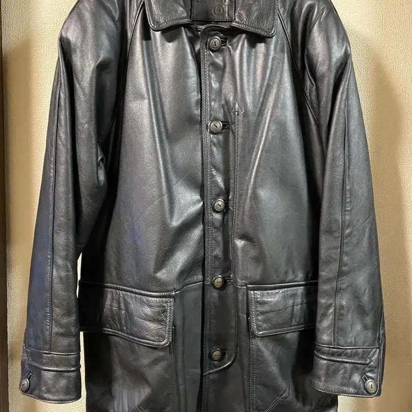 심플하고 스타일리시한 블랙 가죽 롱 자켓.