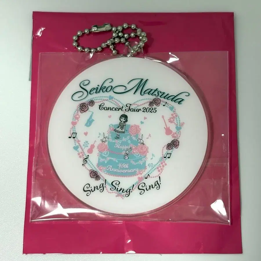 Seiko Matsuda의 2025년 콘서트 투어를 기념하는 키링. - 브랜드: Seiko Matsuda - 이벤트명: Concert Tour 2025 - 디자인: 1st Anniversary, Sing! Sing! Sing! - 색상: 화이트/핑크 - 소재: 플라스틱 - 부속품: 볼체인 방문해 주셔서 감사합니다.