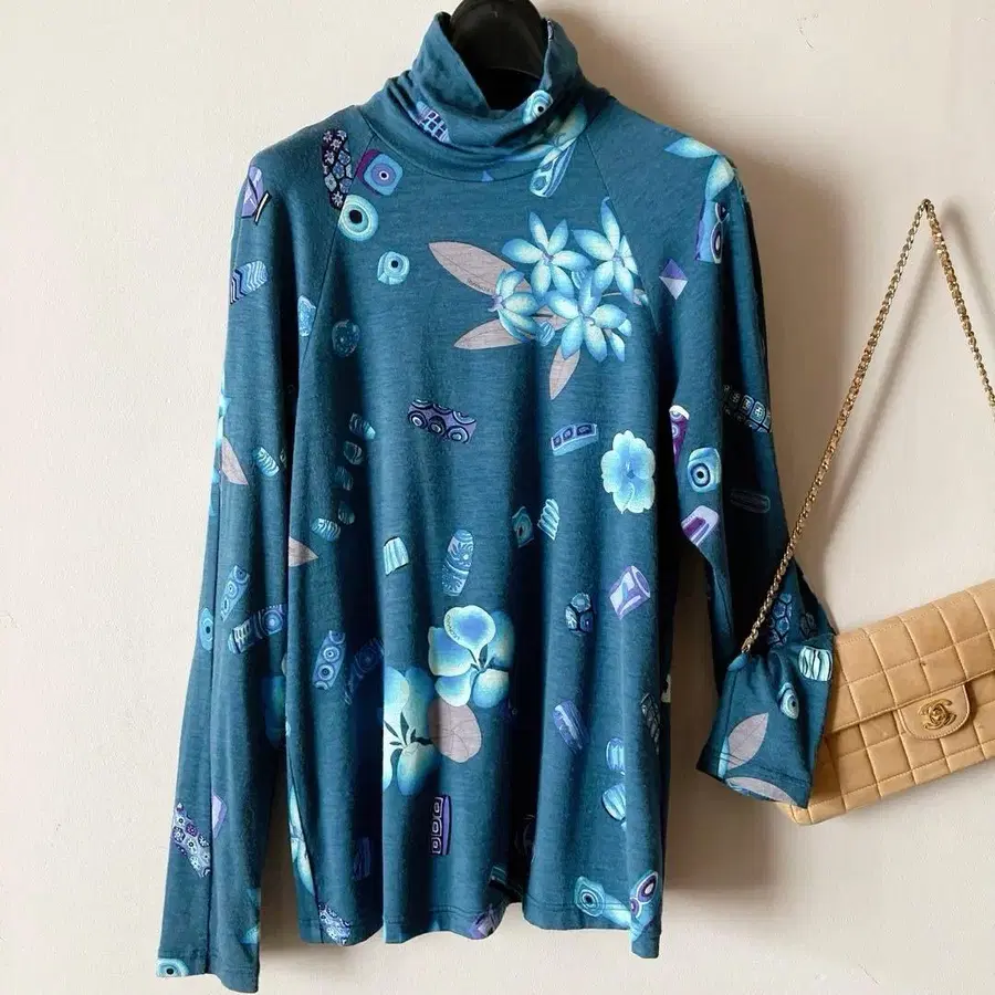 • 새상품급 레오나르 스포츠 올 패턴 하이넥 티셔츠 42 XL