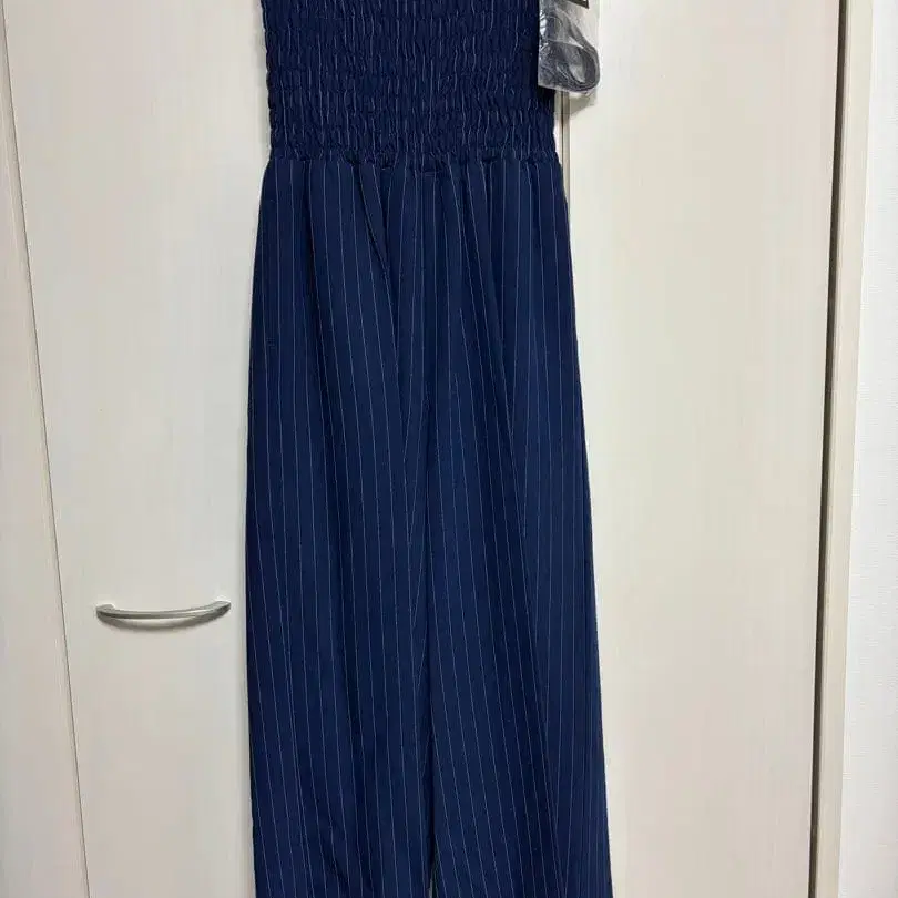 ◆ 네이비 스트라이프 패턴 롱 팬츠 ◆ 경량 소재로 쾌적한 착용감 ◆ 어깨끈? 포함 - 색상: 네이비 - 디자인: 스트라이프 패턴 - 길이: 롱 팬츠 방문해 주셔서 감사합니다. 흡연자, 반려동물은 없으므로 냄새 등에 대해 안심하셔도 좋습니다. 컬러 - 네이비 계열