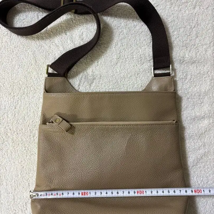 베이지 색상의 가죽 숄더백입니다. 내외부 포켓이 있어 실용적입니다. 여성용입니다. - 색상: 베이지 - 외부 포켓: 있음 - 내부 포켓: 있음 - 스트랩 소재: 패브릭 소재 - 백 소재: 가죽 - 사이즈: 약 28cm x 24cm 방문해 주셔서 감사합니다. 노브랜드 제품이지만, 일본제 가죽 숄더백입니다. 큰 흠집이나 얼룩 없이 아직 사용 가능한 제품입니다.