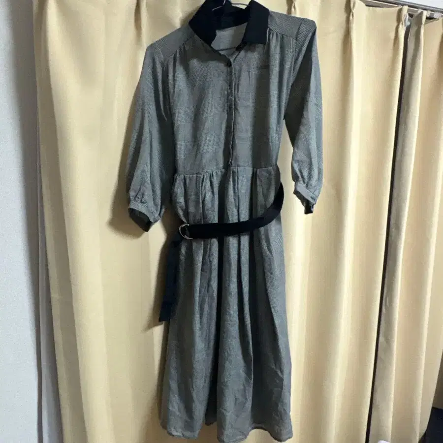 그레이 셔츠 원피스 긴팔 벨트 포함