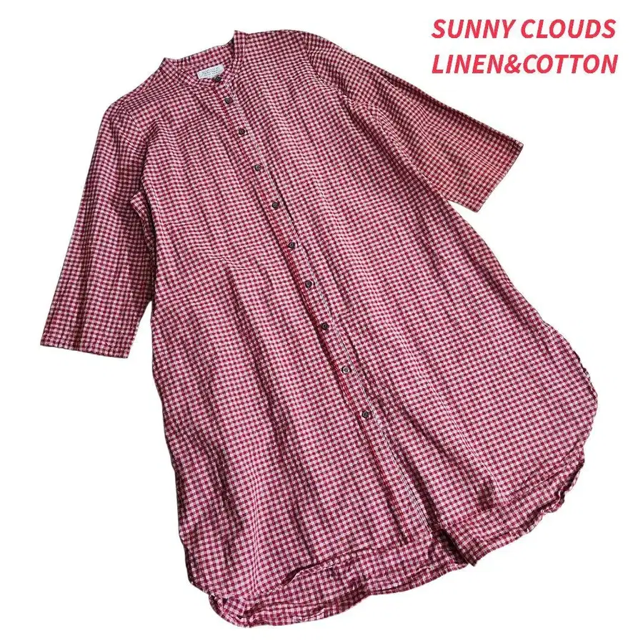 깅엄 체크 밴드 카라 긴팔 셔츠 원피스 린넨&코튼 85150