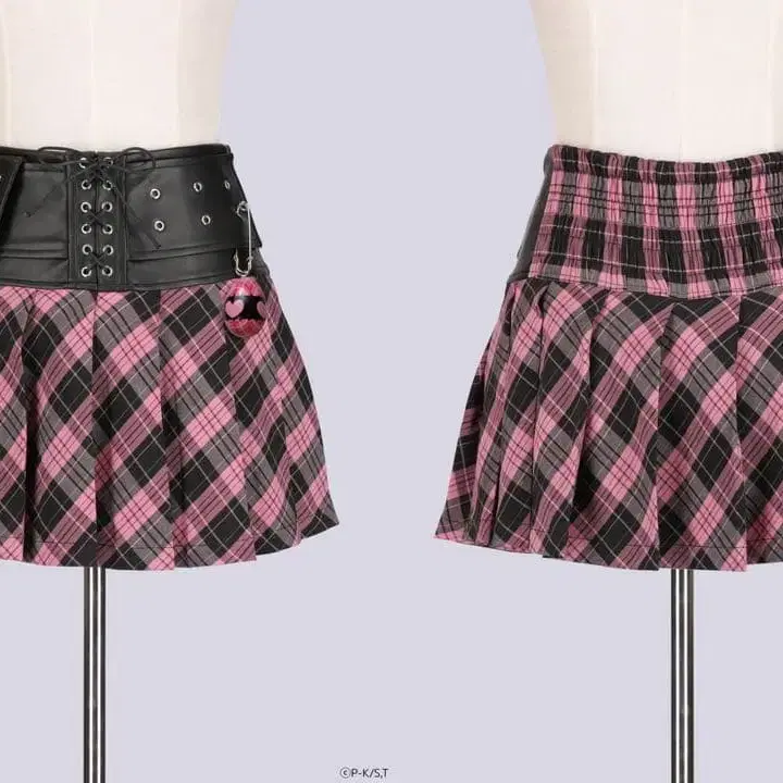 QOOZA x 슈고캬라! 참 포함 가죽 체크 스커트 (란 모델)