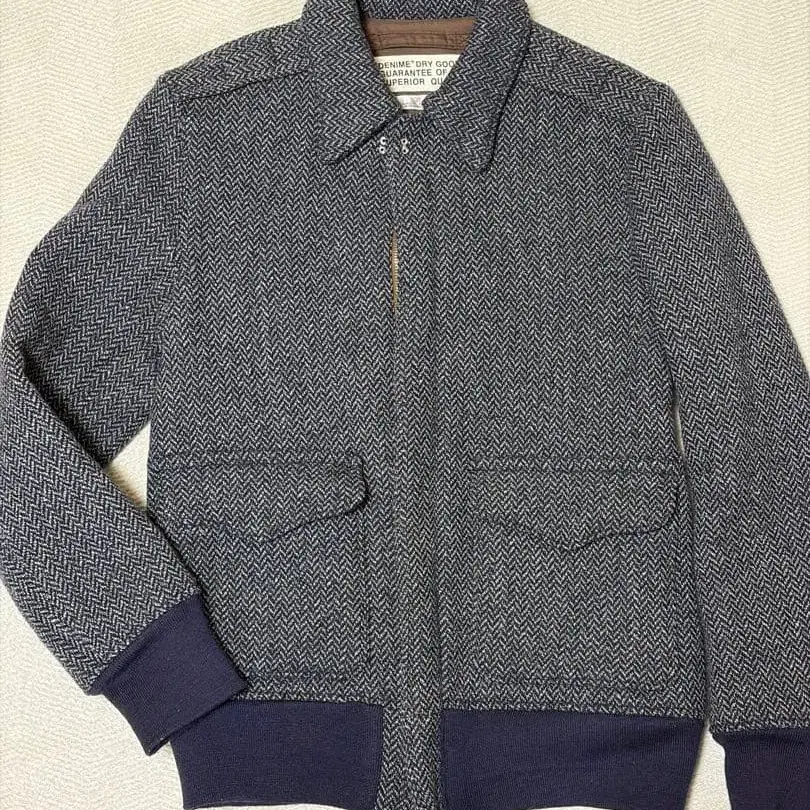 브랜드: Denime 모델번호 컬러: 네이비 패턴: 헤링본 소재 원단: 울 표시 크기: M 특징: 더블 지퍼, 일본제 눈에 띄는 흠집/얼룩 없음.