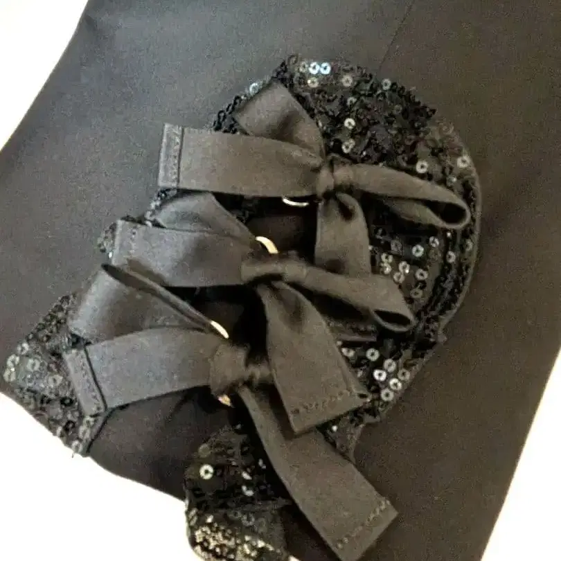 투 비 시크 스트레치 팬츠 38 밑단 프릴 리본 스팽글 블랙