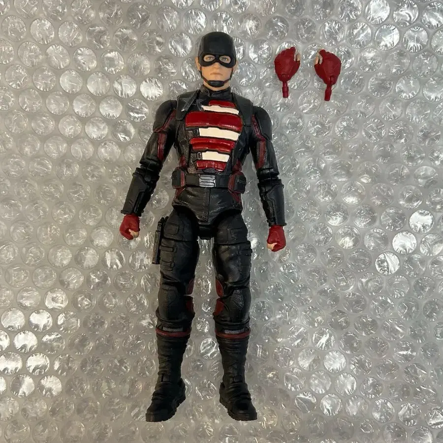 마블 레전드 us 에이전트입니다. 가슴 부분을 재도색하고 이마의 별 마크를 지웠습니다. 작품 속 모습에 더 가깝게 커스텀했습니다. 커스텀 제품이라는 점을 이해하신 후 구매해 주시기 바랍니다. 마블 레전드 어벤져스 썬더볼츠 캡틴 아메리카