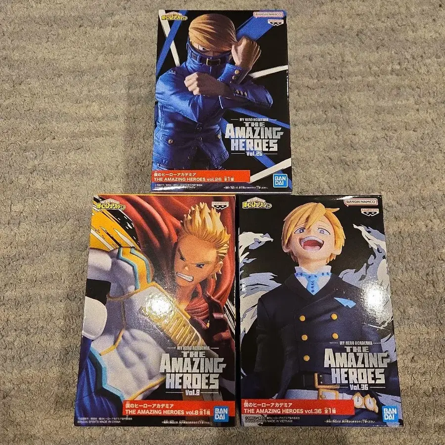 BANDAI 제조의 나의 히어로 아카데미아 피규어, THE AMAZING HEROES 시리즈의 올마이트, 엔데버, 호크스를 포함한 세트입니다. - 시리즈: THE AMAZING HEROES - 버전: vol. 18 - 버전: vol. 36 - 버전: vol. 18 - 캐릭터: 올마이트 - 캐릭터: 엔데버 - 캐릭터: 호크스 - 제조사: BANDAI 방문해 주셔서 감사합니다.