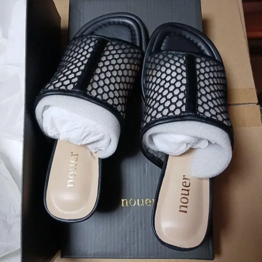 새상품 본체 17800엔 nouer 메쉬 샌들 블랙 23.0cm