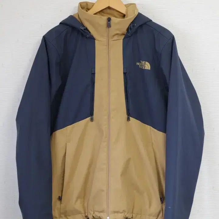 네이비와 베이지의 배색이 특징인 THE NORTH FACE의 M 사이즈 마운틴 후드티.