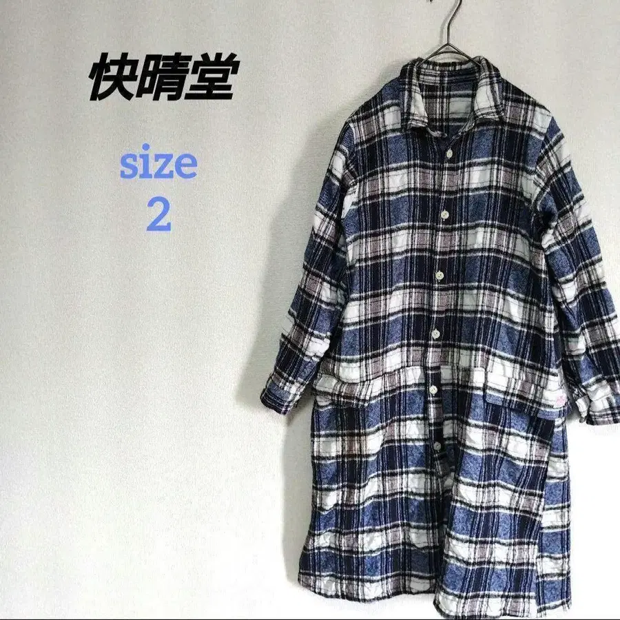 카이세이도 셔츠 원피스 체크 울 코튼 린넨 롱 가디건 파랑