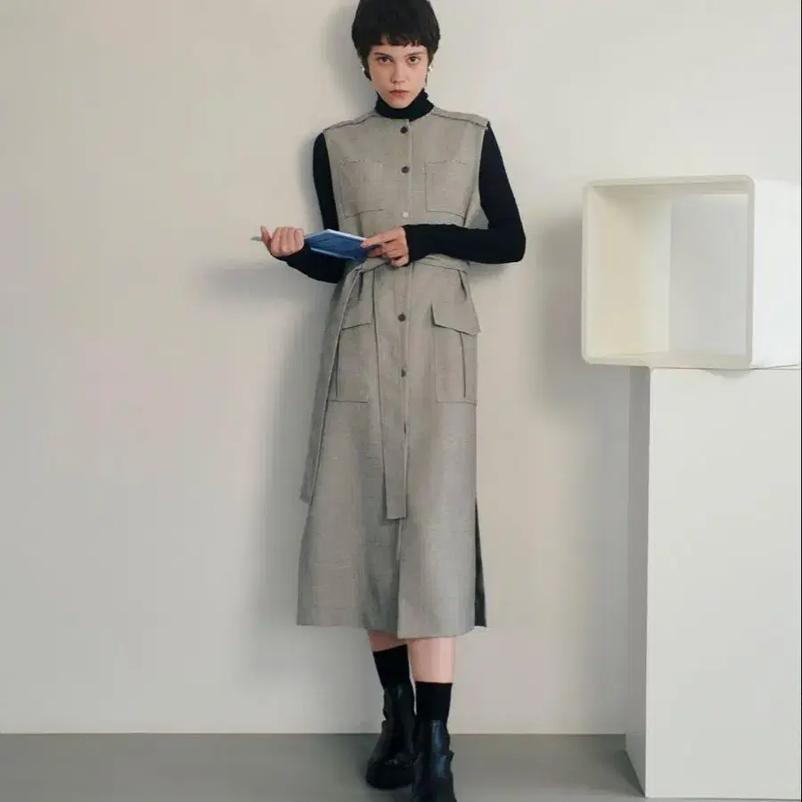 앞을 열어 롱베스트로도 착용 가능하며 돌려입기 좋은 원피스입니다.