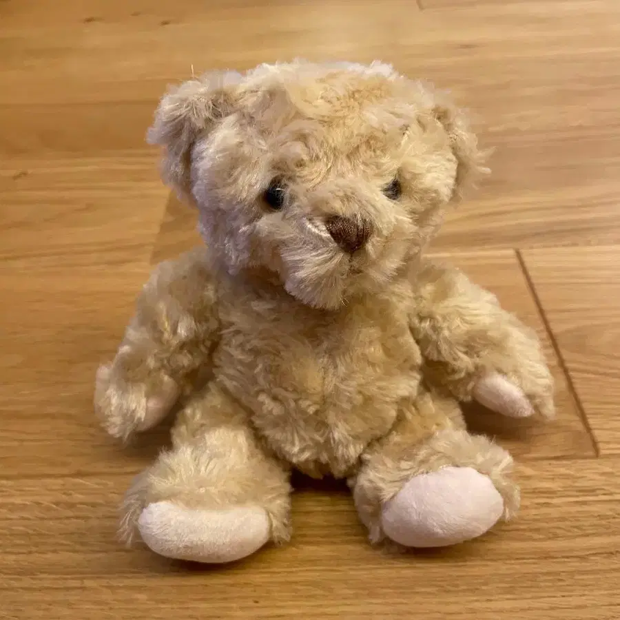 약 22cm의 부드러운 베이지색 곰 모양 봉제 인형입니다. 손에 쥐기 쉬운 소형 사이즈입니다.