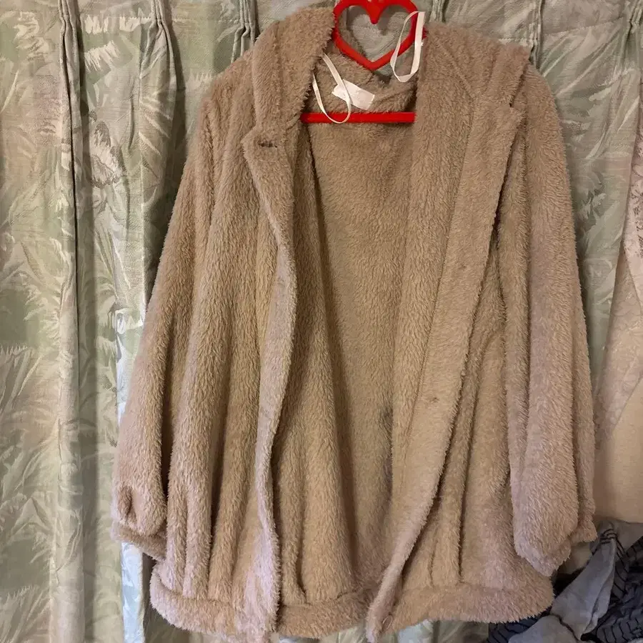 부드러운 베이지 플리스 자켓, L 사이즈.