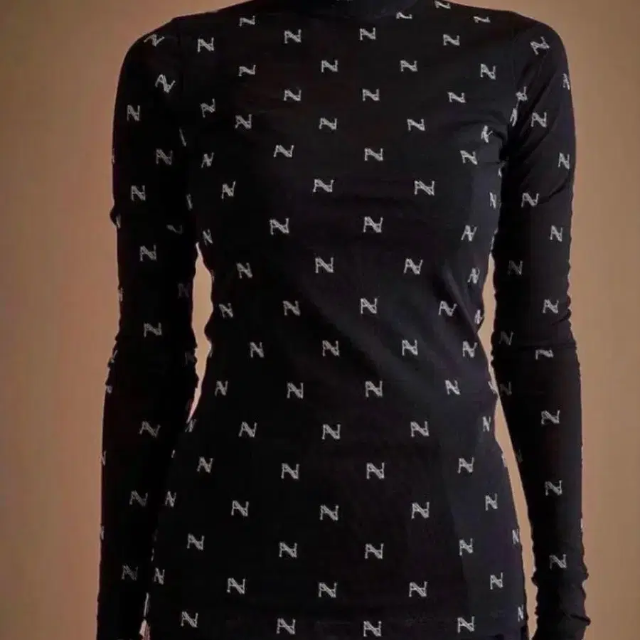 HAENGNAE 시어 탑 택은 제거했지만 원하시면 부착해 드립니다. 로고 패턴이 특징인 블랙 긴팔 하이넥 상의. - 색상: 블랙 - 디자인: 로고 패턴 - 소매 길이: 긴팔 - 넥 스타일: 하이넥 방문해 주셔서 감사합니다. 사이즈 - S