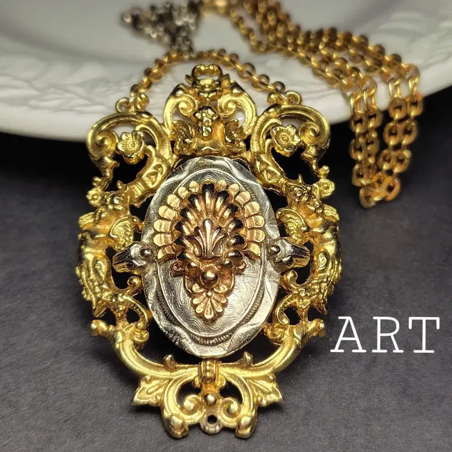 골드 컬러, 구리 컬러, 실버 컬러의 삼색으로 빅토리아 스타일의 영향을 받은 ART(Artisan) 목걸이입니다.