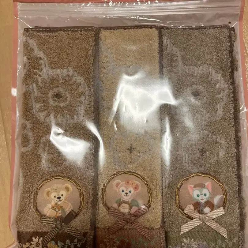 도쿄 디즈니의 Duffy 캐릭터가 디자인된 3장 세트 타월.