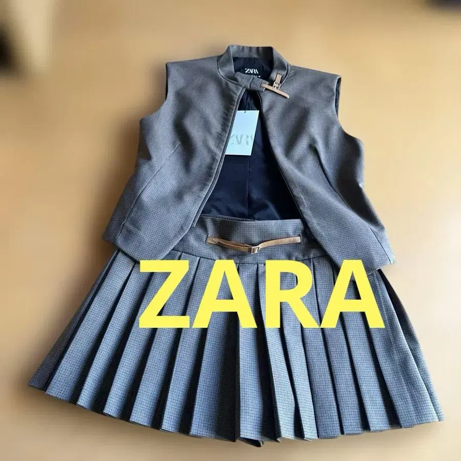 택 포함 미사용 새상품 ZARA 브라운 체크 스커트와 베스트 셋업