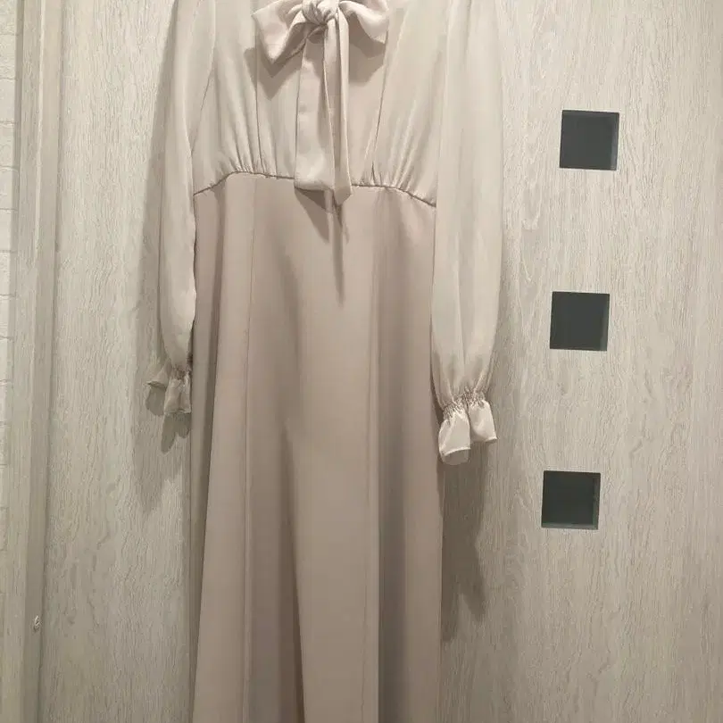 리본 포함 베이지 긴팔 롱 원피스, 사이즈 38