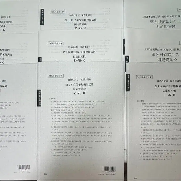 봐주셔서 감사합니다. 2025년 수험 대책 세무사 강좌 자격의 오하라 고정자산세 모의고사 세트입니다. 필기 전혀 없는 문제 용지, 답안 용지, 답안 해설 판매입니다. ◎ 레이와 7년도 시험 대책 모의고사 총 9회분 제2, 3회 확인 테스트 제1, 2회 실력 판정 공개 모의시험 제1, 2회 최종 예상 모의시험 제1, 2회 최종 대책 모의시험 전국 통일 공개 모의시험