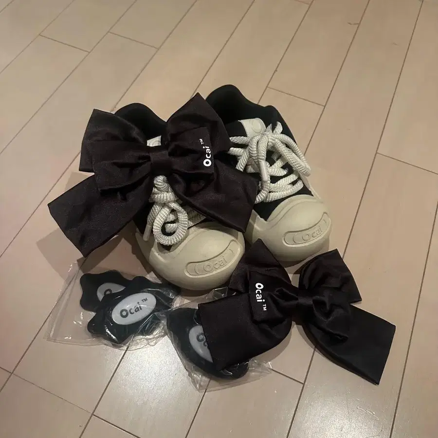 1달 전에 24,200엔에 구매했습니다. 3회 정도 착용했습니다! 커다란 리본과 통통한 형태가 매우 귀엽습니다. 집에서 보관했기 때문에 아주 약간의 얼룩이 있지만, 깨끗한 상태입니다! 부속물인 커다란 리본과 옆에 달 수 있는 ocai 로고도 있습니다 :)