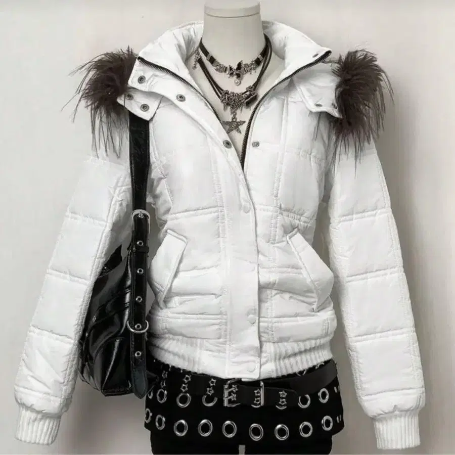 헤이세이 갸루 화이트 퍼 부착 다운 자켓