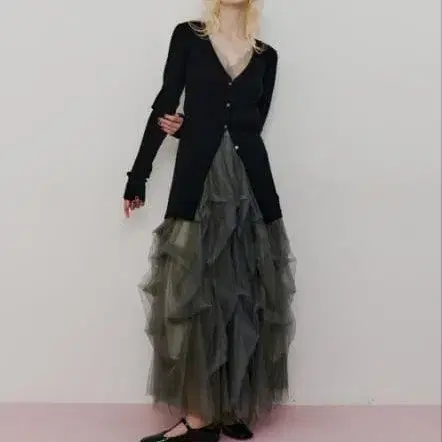 • chico 티어드튤 롱 스커트
